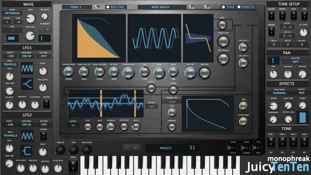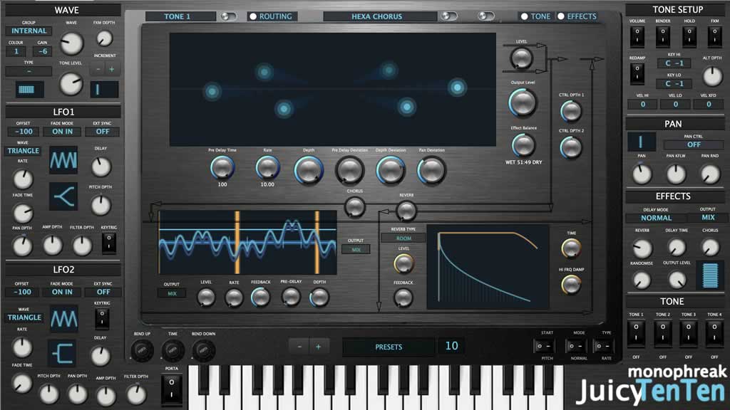 So what is the Juicy1010 and what does it look like? Well, it’s an editor to control my JV-1010 via software for standalone usage and VST/AU for DAW integration. I run a true hybrid music system and like to run hardware like software through building my own plugins in CTRLR to do just that. I like visuals because I tend to forget things so write stuff that I personally find useful and I’m happy to share. Judging by the SoundDiver template, due to the way in which roland wrote the SysEx, the Juicy1010 should be compatible with the JV-1080, JV-2080 and other variants. However, I cannot test features on other devices as I only have JV-1010.